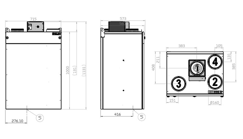 Toppanslutning av kanaler gjør aggregatet velegnet til installering inne i boligen. Den hvite overflaten gjør at det naturlig blender inn med andre hvitevarer i vaskerom eller teknisk rom.