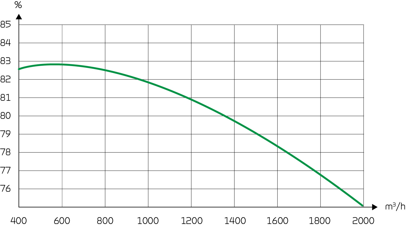 TemperaturvirkningsgradTemperaturvirkningsgrad for roterende varmevekslere i henhold til EN308 (tørr). |