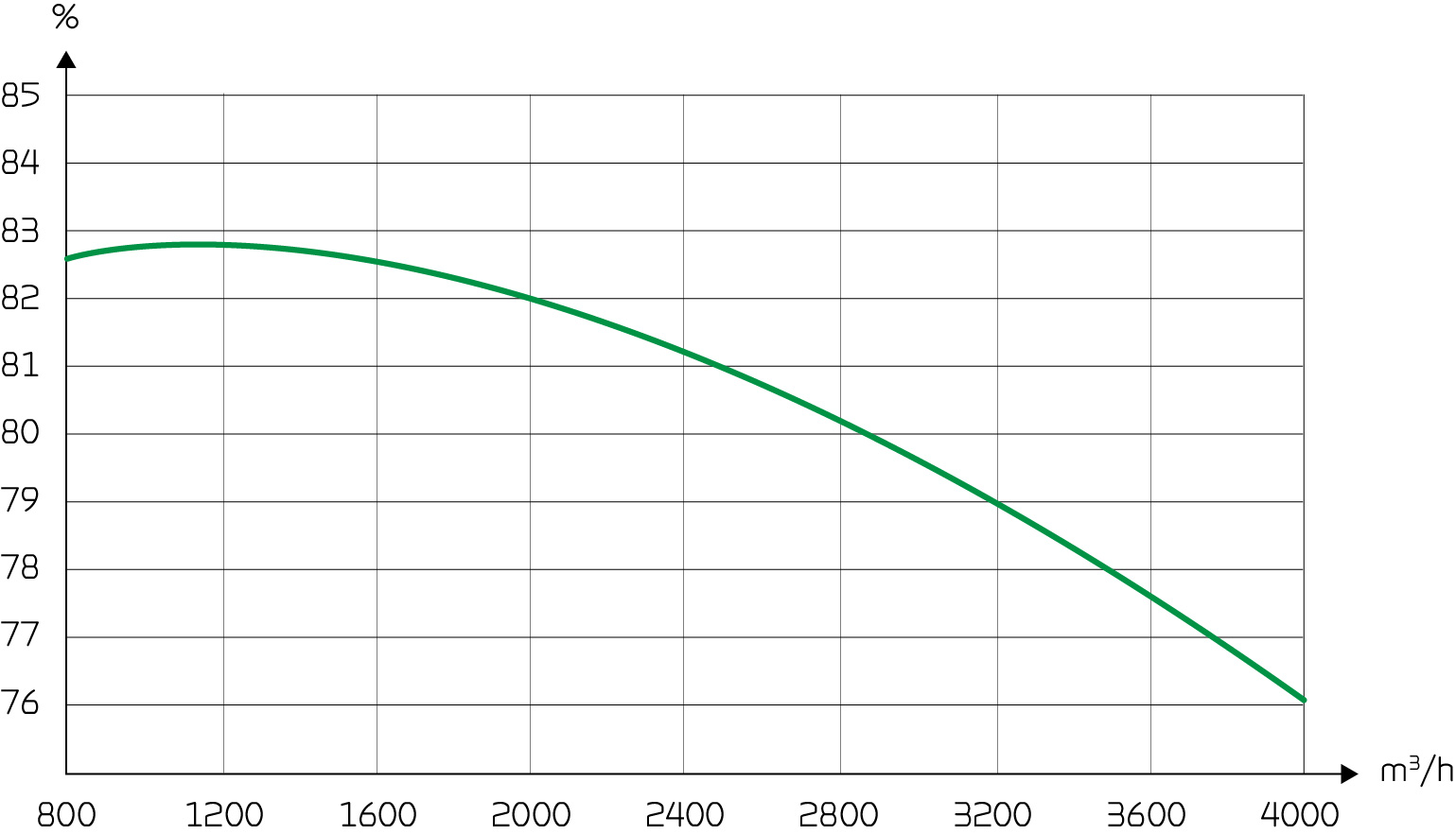 TemperaturvirkningsgradTemperaturvirkningsgrad for roterende varmevekslere i henhold til EN308 (tørr). |