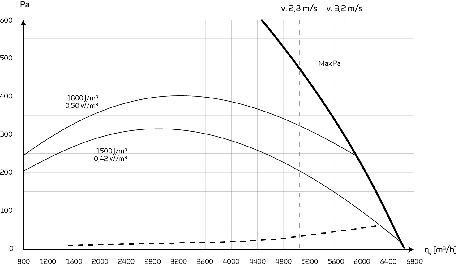 Kapasitet (kondensasjonsveksler)Prosjekteringsdata er beregnet på grunnlag av en kondensasjonsveksler. Max Pa kapasitet af standardaggregat, Pt ext som funksjon av qv med hensyn til SFP-Verdiene. SFP-verdier iht. EN 13053 er for standardaggregat med ISO ePM10 >60% (M5) og ISO ePM1 50% (F7) filtre og uten varmebatteri. * Lufthastighet over fordamperoverflaten måles ved meter per sekund. OBS! SFP-verdiene måles og oppgis som en totalverdi for begge viftene. |